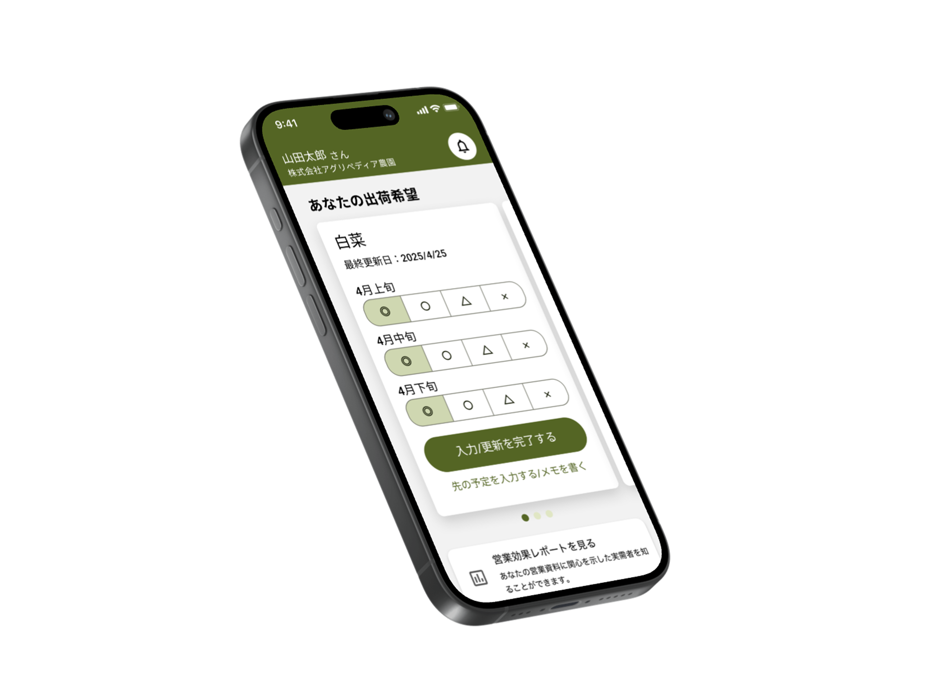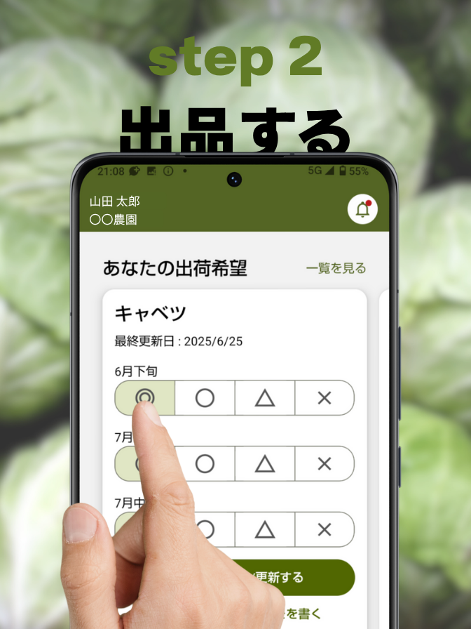 時期ごとの出荷可否を選ぶだけ。販路拡大に向けた一歩を、スマホひとつで効率よく始められます。
