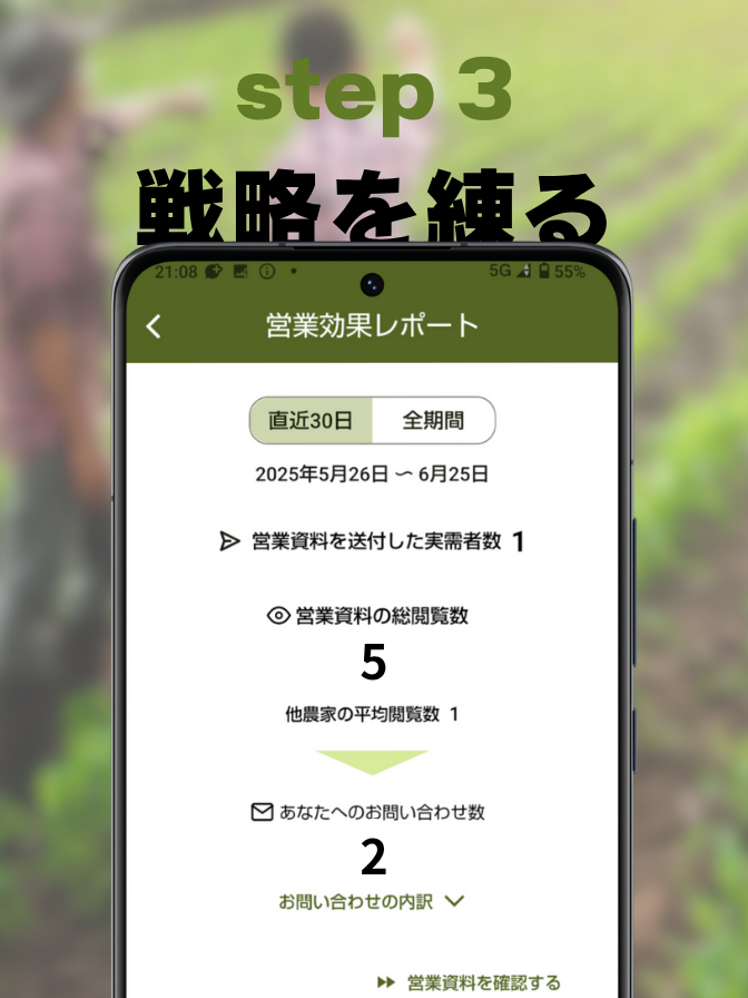 ご登録情報から、生産者の魅力が詰まった資料を自動生成。買い手にプロの視点で丁寧に届けます。